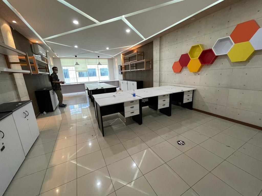 Hotindojaya bukan hanya membuat design saja tetapi juga membangun dan merealisasikan apa yang telah didesign sebelumnya, yang anda lihat dibawah ini adalah kantor yang belum jadi, anda bisa melihat panel-panel dan cabinet yang belum selesai dibuat.