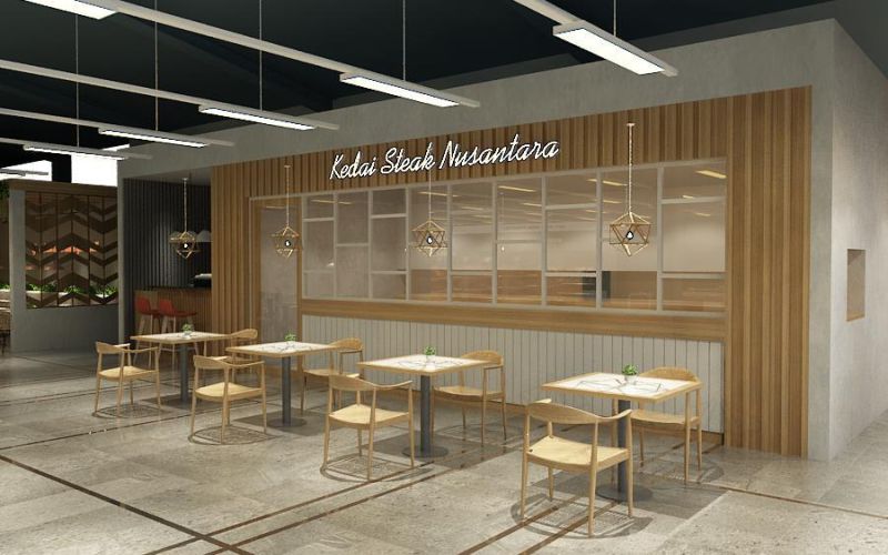 Restaurant tidak hanya untuk makan atau minum saja yang harus diperhatikan , kenyamanan juga harus diperhatikan untuk pengunjung dan tempat untuk berkumpul bersama keluarga atau teman. Hot Indo Jaya mengdesign restaurant dengan konsep nyaman dengan bangku bangku yang sejajar agar lebih memudahkan pengunjung berdiskusi bersama keluarga ataupun teman. Design Interior restaurant ini bisa digunakan untuk yang ingin memaksimalkan tempat pada saat berkunjung agar memanfaatkan tempat dengan kapasitas banyak. sangat cocok untuk pengunjung yang ingin berkunjung seperti perkumpulan reuni dll . Seperti restaurant Kedai Steak Nusantara ini sangat nyaman dan pengunjung mudah untuk memesan makanan ataupun minuman.