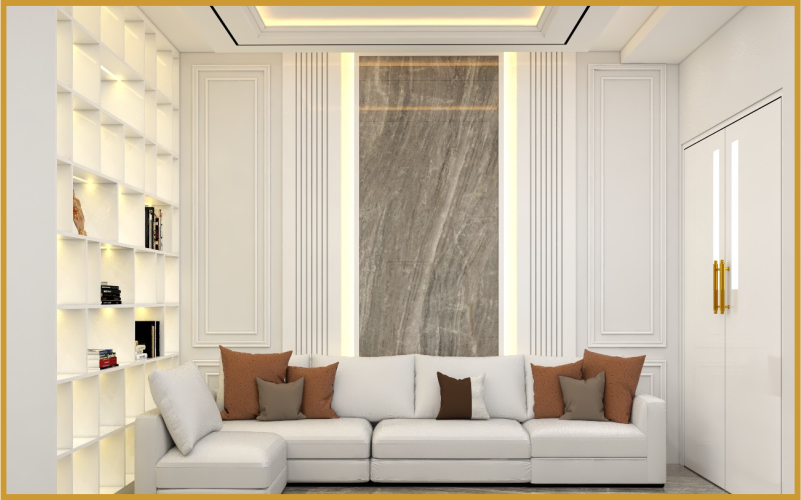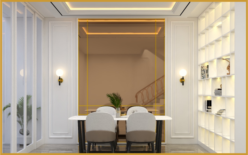 Profil di ceiling dan wallpanel pada ruangan ini adalah adopsi dari interior design classic, Interior design Modern mengadopsi dari semua jenis gaya interior design yang populer di era zaman tertentu dan tidak terbatas dari gayanya saja tetapi juga material yang digunakan, selengkapnya tentang interior design modern silahkan baca artikel Design Interior Modern.